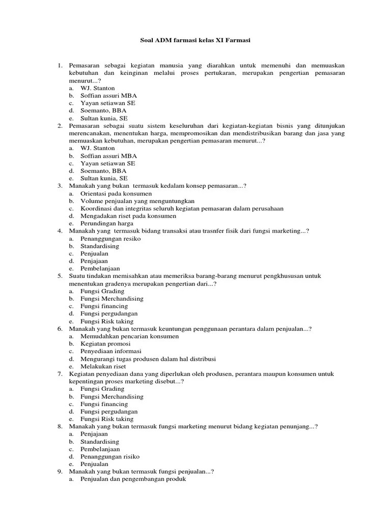 Soal dan jawaban administrasi farmasi kelas xii dapodik 13 · latihan soal un farmasi smk tahun ajaran 2019 2019 arsip · download silabus dan rpp .